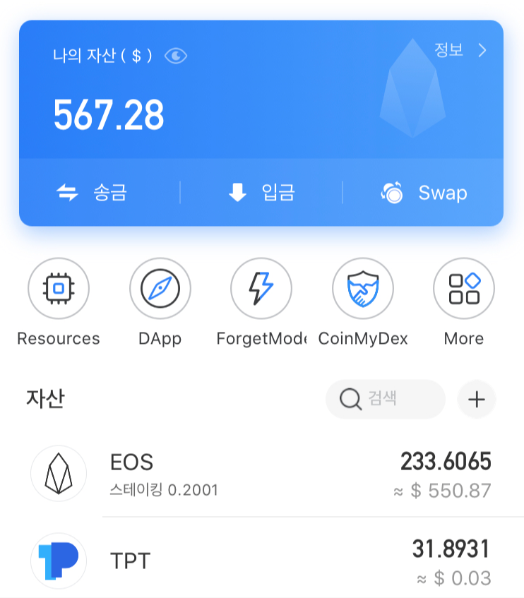 오래간만에 이용해본 이오스체인.. 역시 빠릿빠릿합니다. 스팀처럼 말이지요. 트랜잭션에 수수료도 쓰이긴 하지만 이더리움, 비트에 비하면 아주 양반이기도 하구요. EOS가 참 나쁘지는 않은데, 점점 코인순위에서도 떨어지는 행보.. 가슴이 아픕니다.