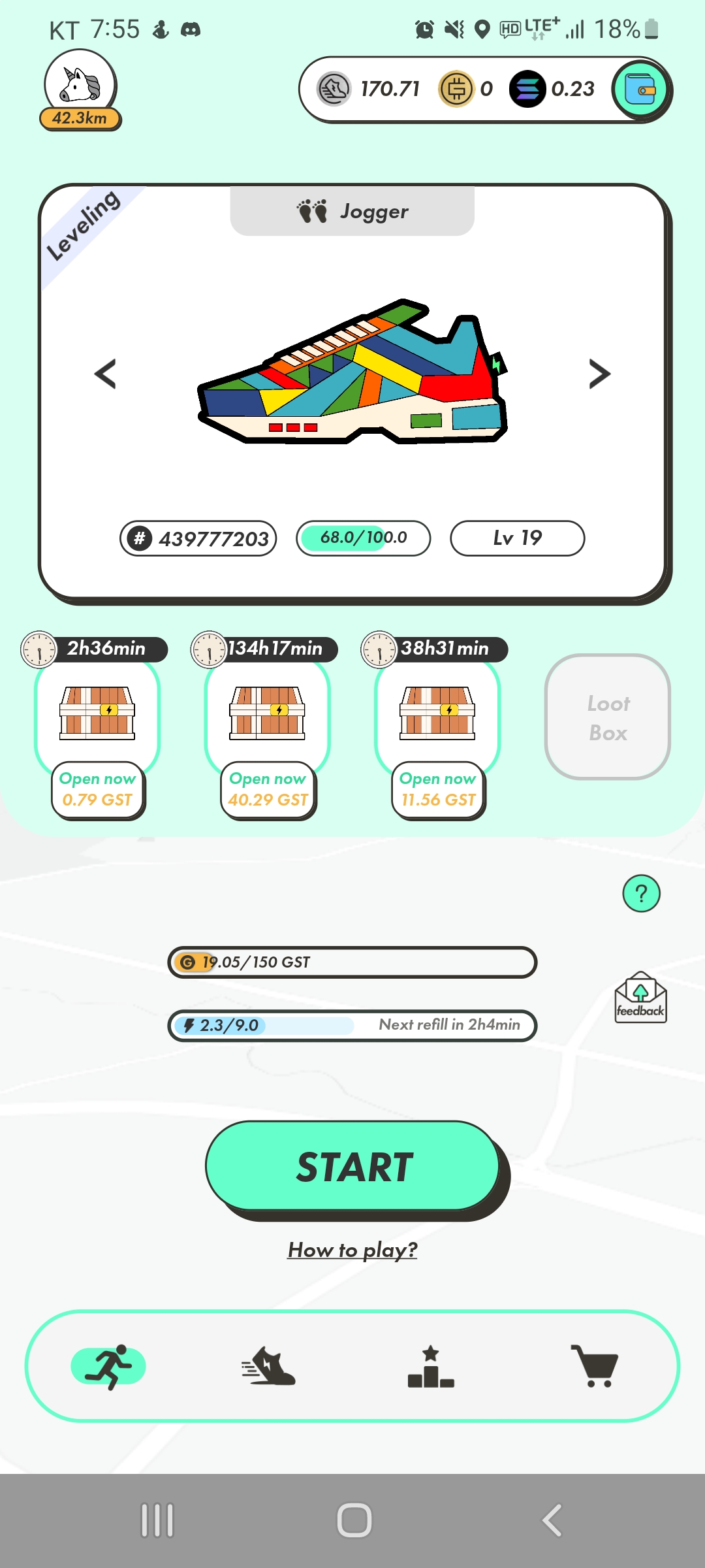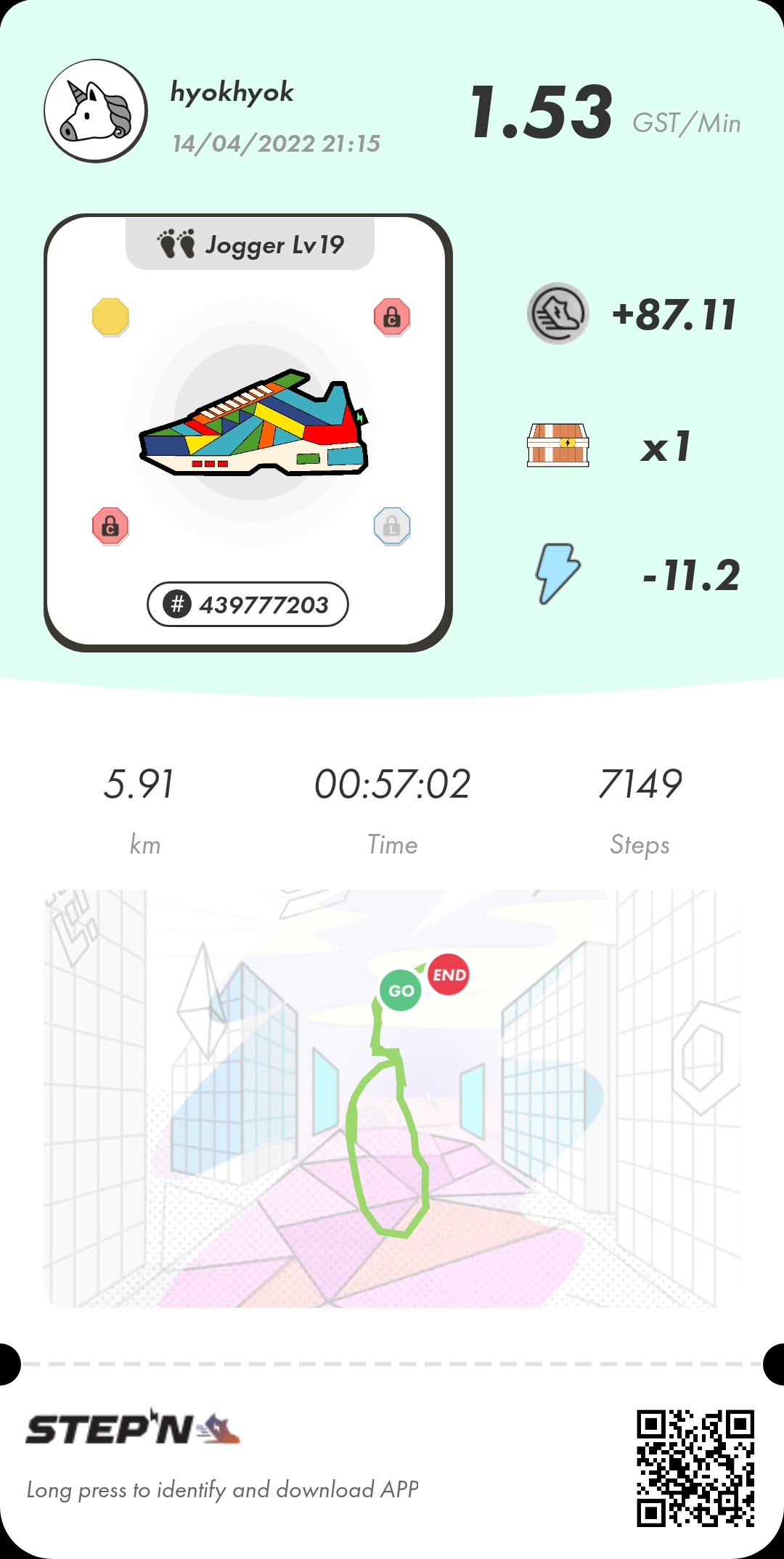 그결과 커먼 미스테리 박스 하나와 87개의 gst를 얻었다 현재 하루 70개 페이스 이다