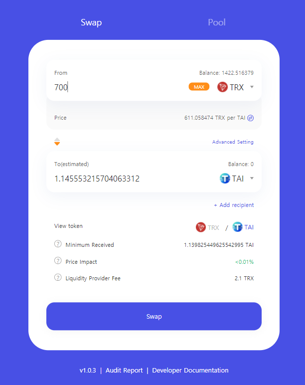 https://salmonswap.io/menu/TAI_TRX