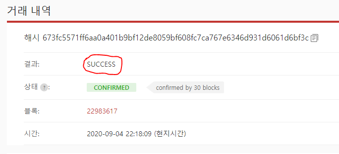 supply버튼 클릭후 성공하면 아래와 같은 화면이 뜬다.