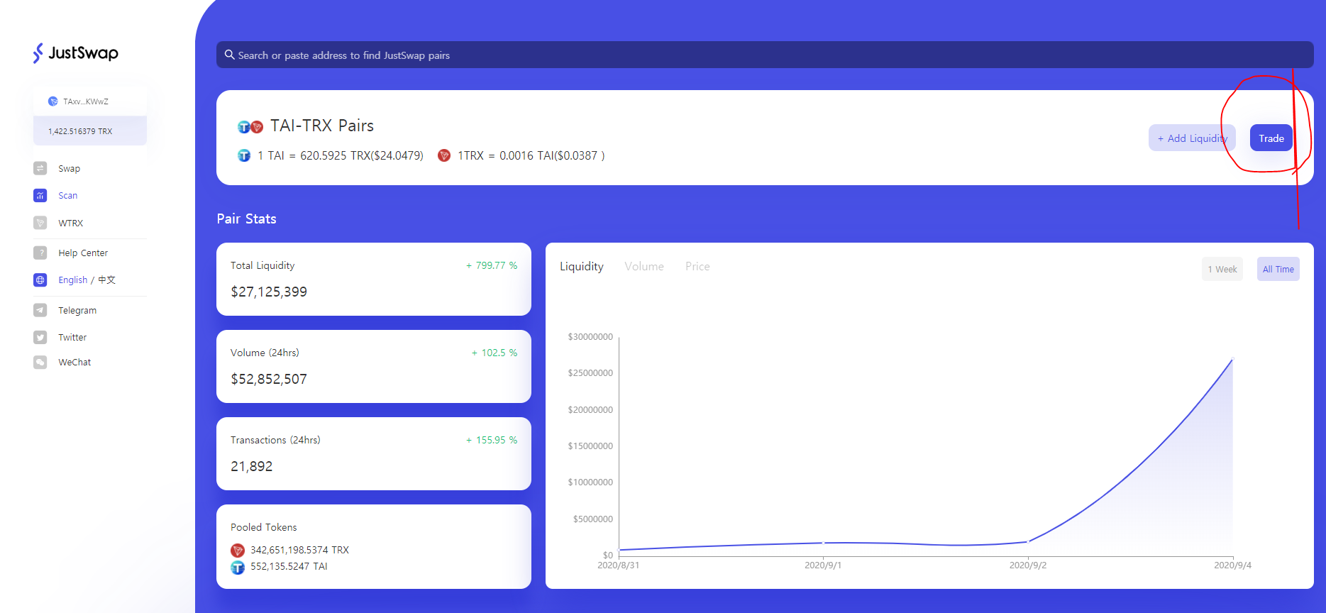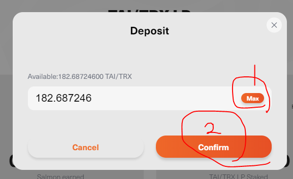 https://salmonswap.io/menu/TAI_TRX 로 돌아가서 아래 그림과 같이 클릭하자