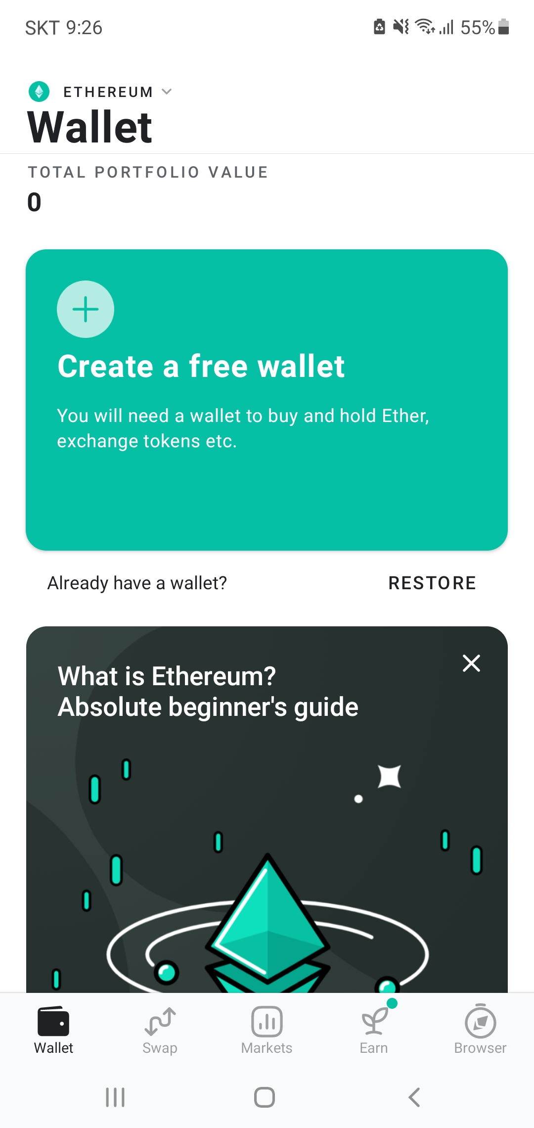 메타마스크는 연동안되는듯하고 현재 갤럴시스토어에있는 마이이더월렛을 깔았습니다.