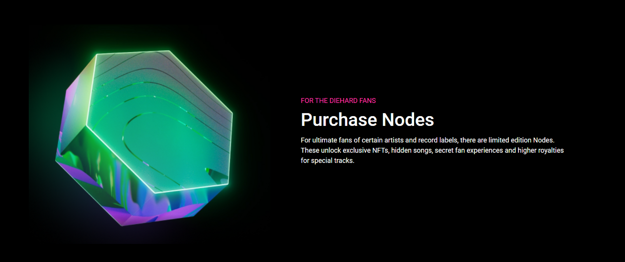 ▶️ 초반에는 뮤직 NFT를 통해 보상을 받으려면 노드를 소유해야 합니다. 나중에는 다른 사람의 노드에서 음악 트랙을 호스팅하고 보상을 받을 수 있습니다.