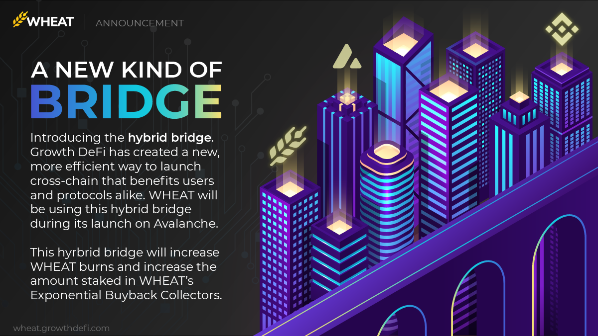 MOR과 WHEAT의 아발란체 네트워크 런치와 관련하여 이를 제대로 이해하기 위해서는 그로스 디파이가 새롭게 도입하는 하이브리드 브릿지 시스템을 이해해야 합니다. 하이브리드 브릿지가 어떻게 작동하고 각각의 체인에서 WHEAT토큰에 어떤 영향을 미치는지 알아보겠습니다. WHEAT의 하이브리드 브릿지는 서로 다른 체인의 WHEAT보유자 간에 인센티브를 조정하고 상당 한양의 WHEAT소각을 불러일으킵니다. 또한 시장 수요에 따라 자체적으로 조정되는 인센티브가 제공됩니다. 즉 WHEAT보유자와 프로토콜 모두에게 이익이 됩니다.