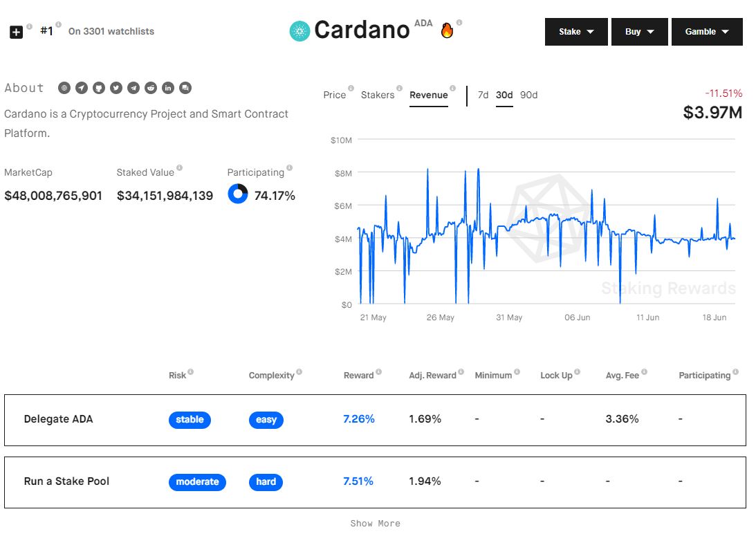 스테이킹에 관한 모든 정보가 모여있는 Staking Rewards.com