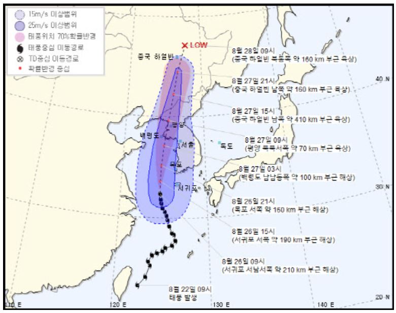 “27일 새벽 태풍이 서해 중부 해상으로 오면서 인천에 근접하면 순간적으로 부는 바람이 초속 40~60m에 달할 것 예상된다”며 “수도권에 강풍이 부는 시간이 아침 출근 시간과 겹쳐 체감하는 영향 더 크고 2차 피해도 우려된다”