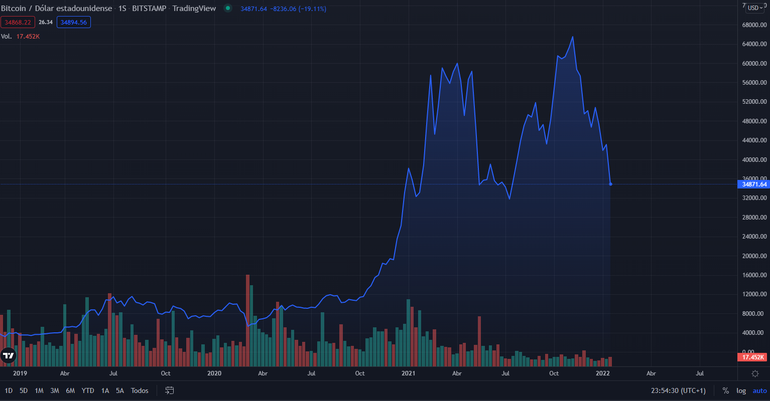 In his most recent explanatory video , Juan Rodríguez spoke about the BTC price correction that occurred yesterday, January 21, which has left it at a value of USD 35,200 according to the BTC price calculator .