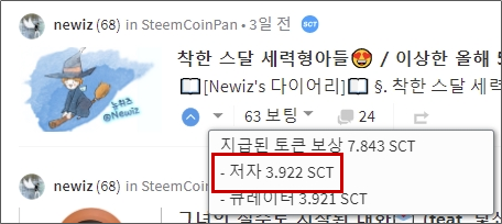 해당 글에서 KRWP로 받은 저자보상은 3.374 KRWP였고,