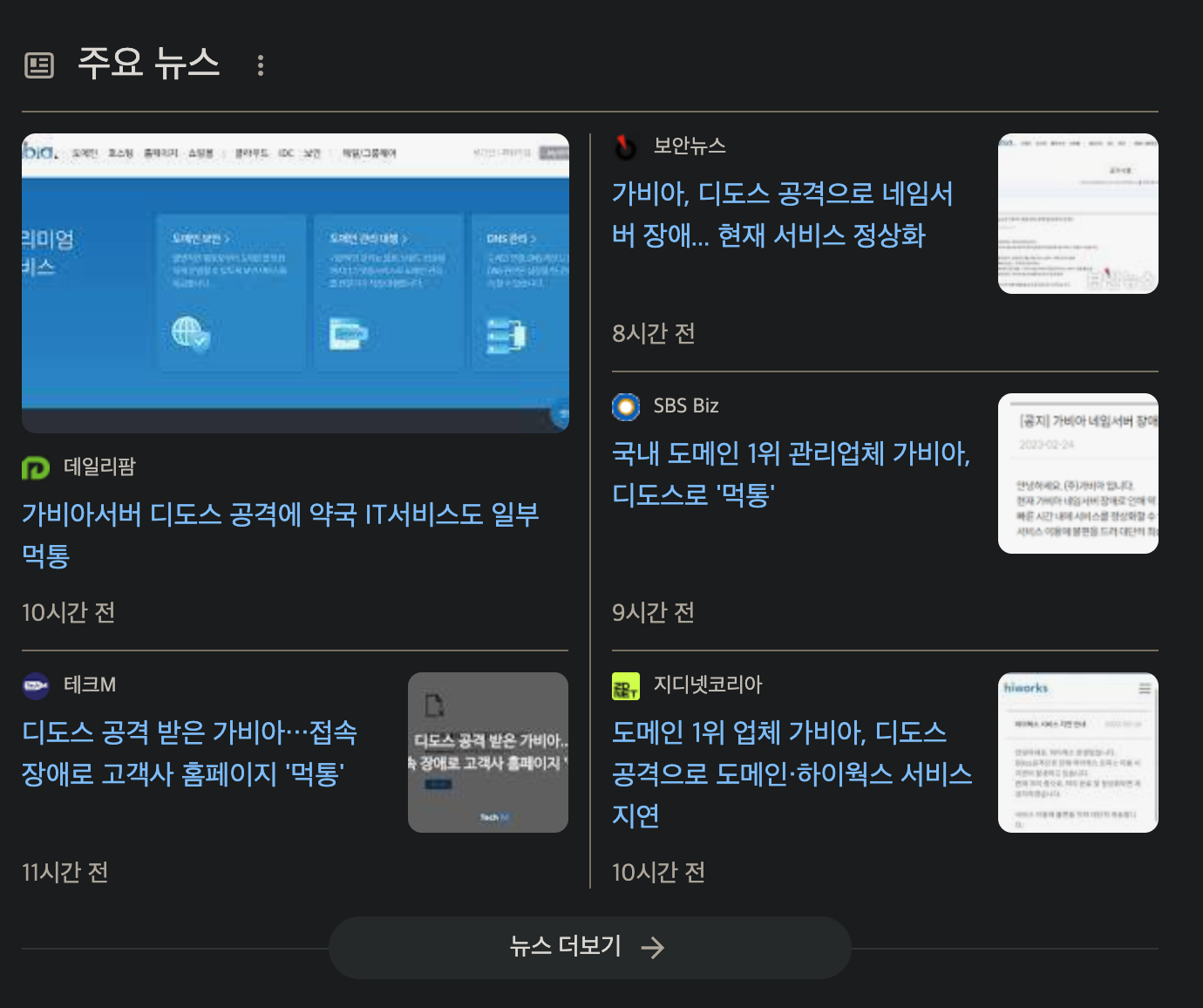 당시에는 가비아 관련 기사가 없었는데 지금 검색하니 디도스 공격을 당했다고 하는군요.