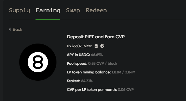 - 유일하게 이더 계열이고 PIPT를 사서 스테이킹한 후에 CVP를 채굴 중에 있습니다.