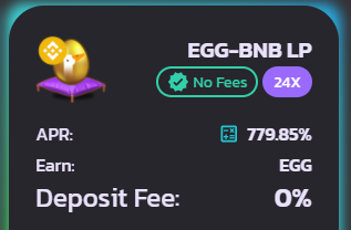 - 최근에는 EGG-BNB LP로 EGG를 채굴하고 채굴된 EGG는 다시 EGG 풀에 재투자를 해서 캐는 중입니다.