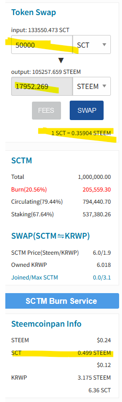 스왑 비율이 안 좋네요rtytf2 (85)in SCT.암호화폐.Crypto • 3 years ago 스왑을 해볼려고 했는데, 갯수가 늘어나니 예상했던대로 너무 안좋네요... KRWP 같은경우는 스팀의 3배정도가 맞는거 같은데 1.88878 이 되어버리네요. SCT 도 확 내려가고... SCTM 도... STEEM 으로 많은 갯수를 스왑 못할것 같네요... #sct-kr #union #sct-freeboard #sct