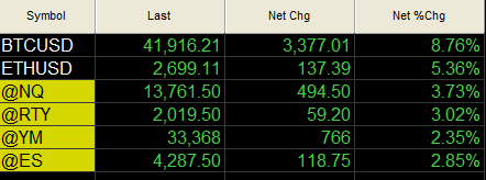BTC, ETH, NASDAQ, RUSSELL 2000, DOW, SP500 모두 대 상승~