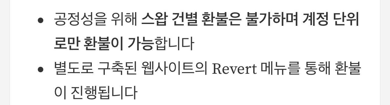 • 공정성을 위해 스왑 건별 환불은 불가하며 계정 단위로만 환불이 가능합니다