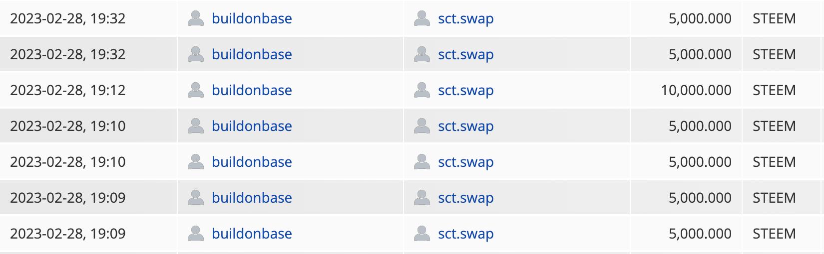 또한, 스왑 재개 후 가파른 가격 하락을 막기 위해 스왑 시작 초기 약 40,000 STEEM을 사용하여 매수를 진행하였습니다. 아래에서 매수를 진행한 트랜잭션 시간을 확인하실 수 있습니다.