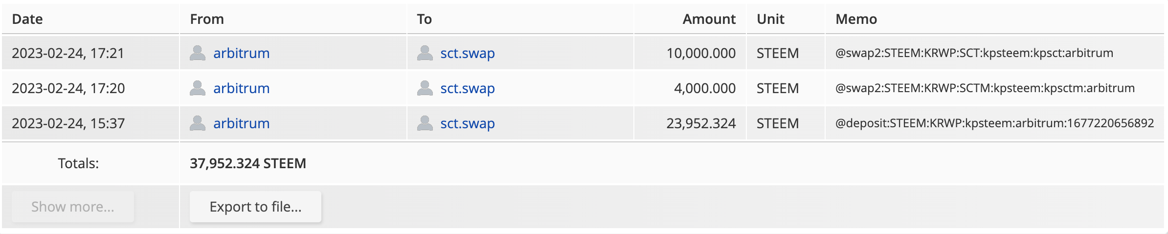• 스왑으로 받은 STEEM 수량 합계 : 16,263 STEEM