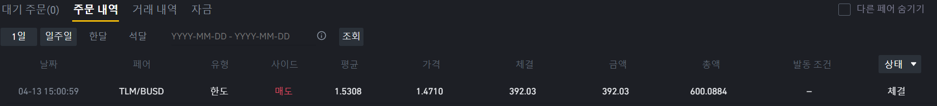 1.53불에 체결이되어 600불이라는 꽁머니가 생겼다