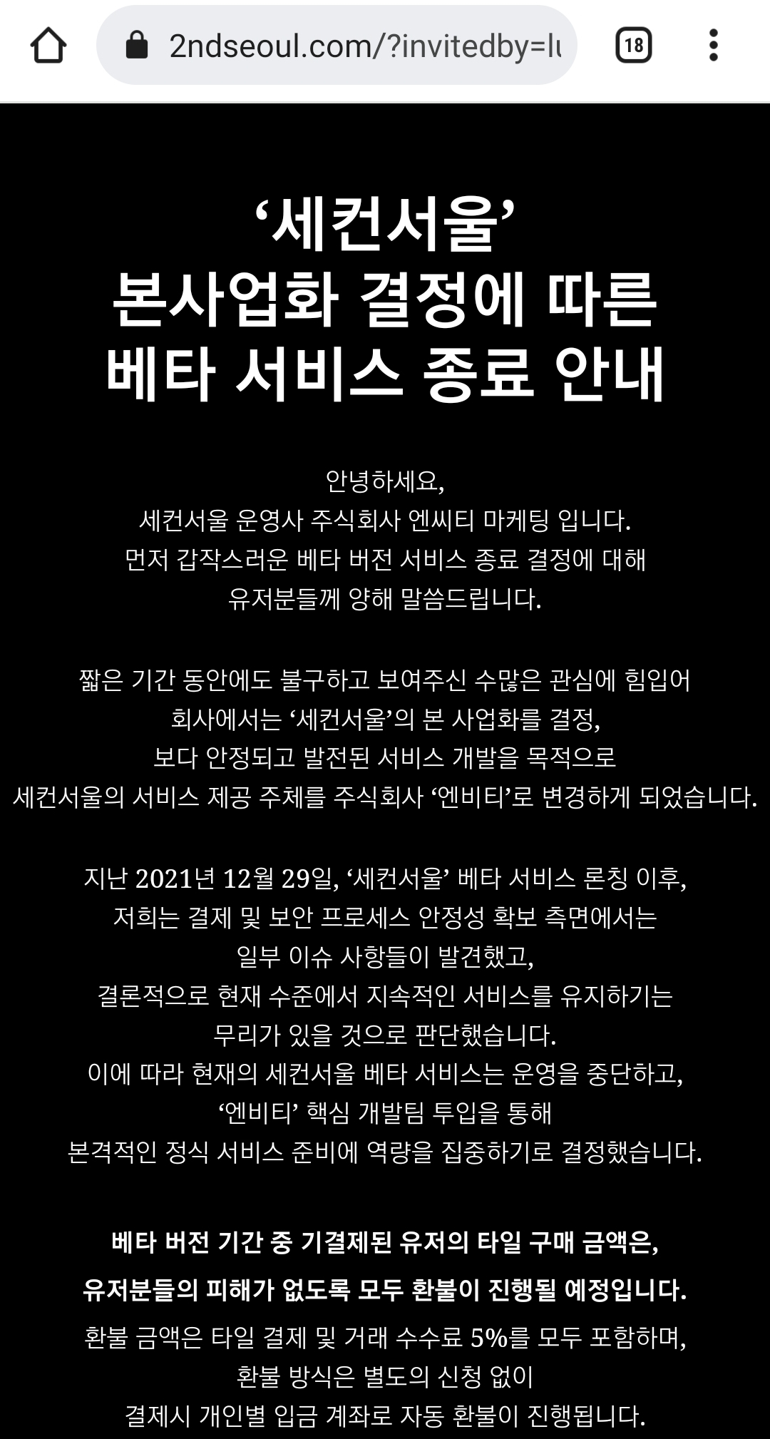 갑자기 베타서비스 종료 공지를 내버리네요