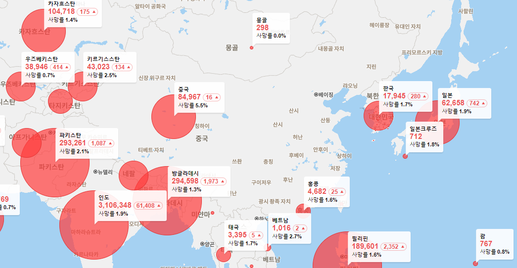 코로나 19의 발원지인 중국이 현재 다른 나라에 비해 인구수에 비해 확진자가 적게 나타나는 것은 조작이라는 논란도 있듯이 상당히 이례적인 일인것 같다