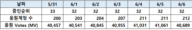 증인투표 응원을 적극 홍보 예정입니다. 보팅파워 가치가 오르면 kr 커뮤니티에 더 많은 응원이 가능합니다.