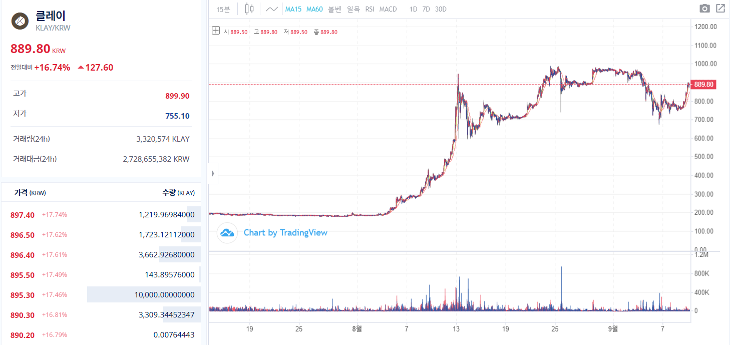 그리고 이 이 가격대에서 또다시 하락 상승을 반복하며 이수준을 가격을 유지할지 지켜볼 사항이다.가격을 급하게 올리진 않겠다는 가격관리가 티나는 클레이다.