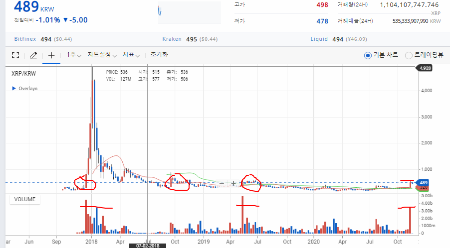 에어드랍 호재등을 고려시 지금 출발한 느낌일 수 있다. - 거래량도 제법 괜찮다.