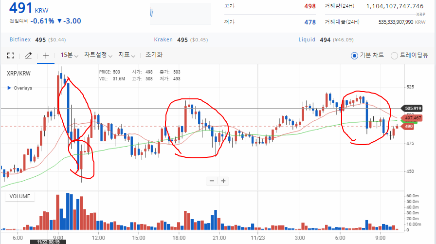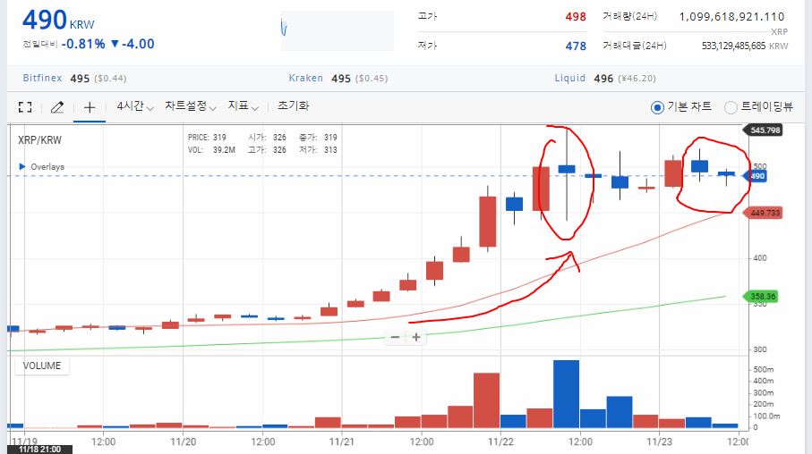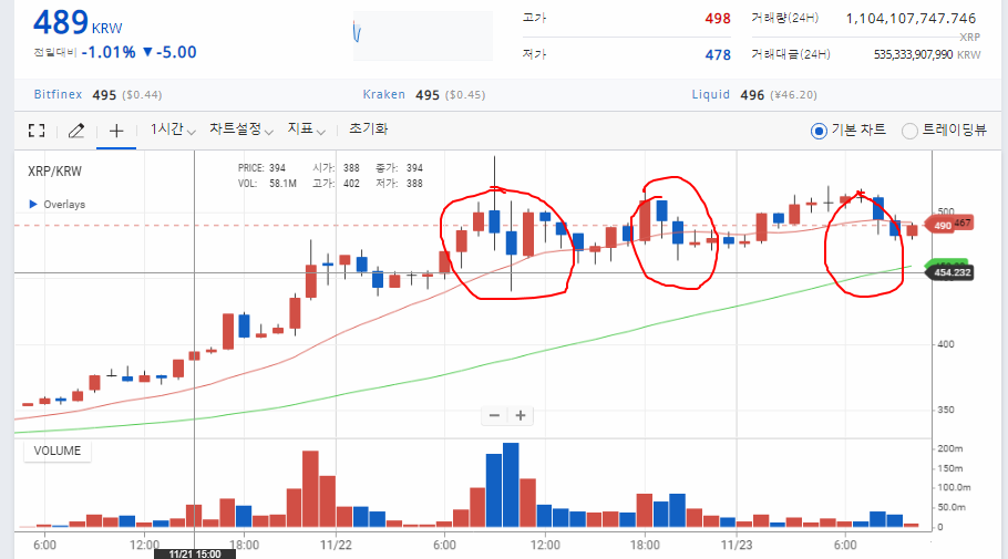 요즘 잠시 핫한 리플 가격차트를 시간주기별