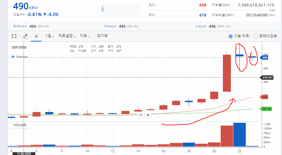 쫌 잃어도 흥분하지 않는다는것 정도이다. - 리플 조금 더 담궜다. 450원은 넘겼으니 800~1000까진