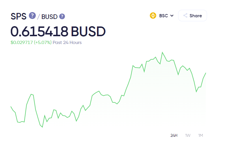 SPS 가격이 $0.5x대까지 떨어지다가 약간 반등하고 있습니다.