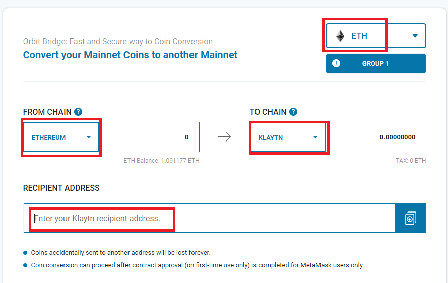 전송하고자하는 코인을 선택합니다. 전 eth를 선택했습니다. 보낼 곳의 chain을 선택합니다. 당연히 이더리움입니다. 받을 곳의 chain은 klaytn입니다. 마지막으로 받을 klaytn 주소를 입력하고 convert now를 누르면 됩니다.