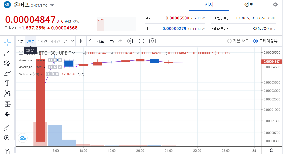 오늘 onit 토큰이 배부되었고 바로 btc 마켓에 상장이 되었죠. 저도 505개를 받아서 적당한 가격에 매도하여 약 30만원 정도 이익을 보았습니다.