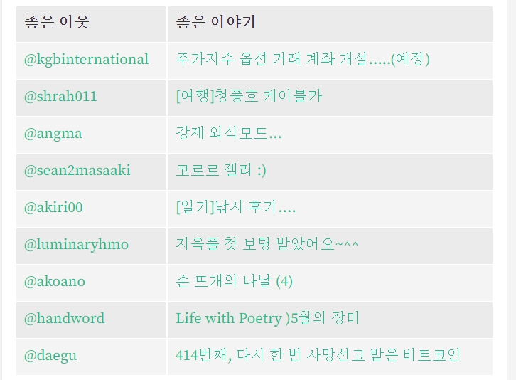 해당 서비스의 장점은 이렇게 출석체크하신 분들의 글을 링크로 모아주시는데