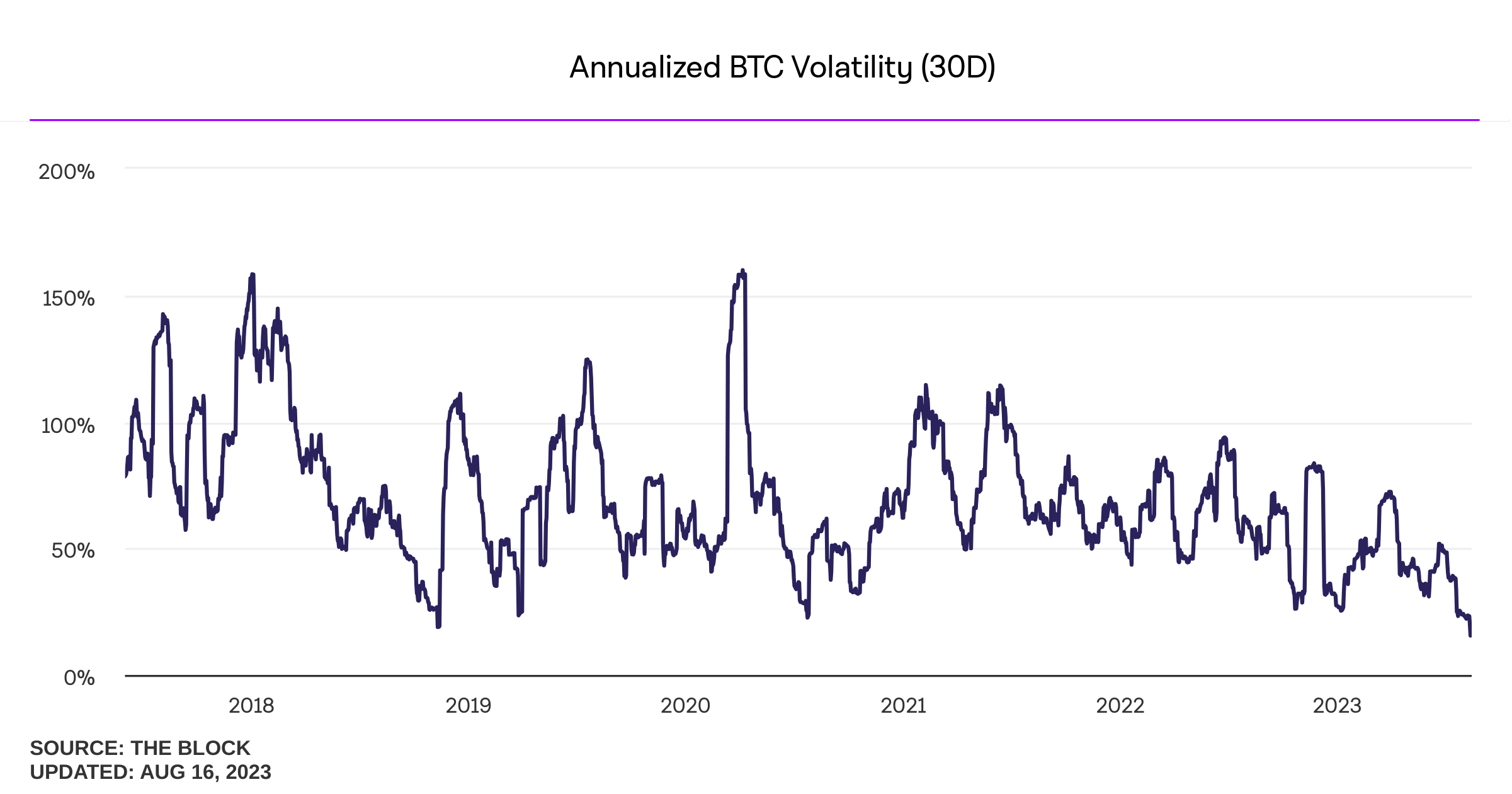비트코인의 변동성이 역사적 저점 기록 중