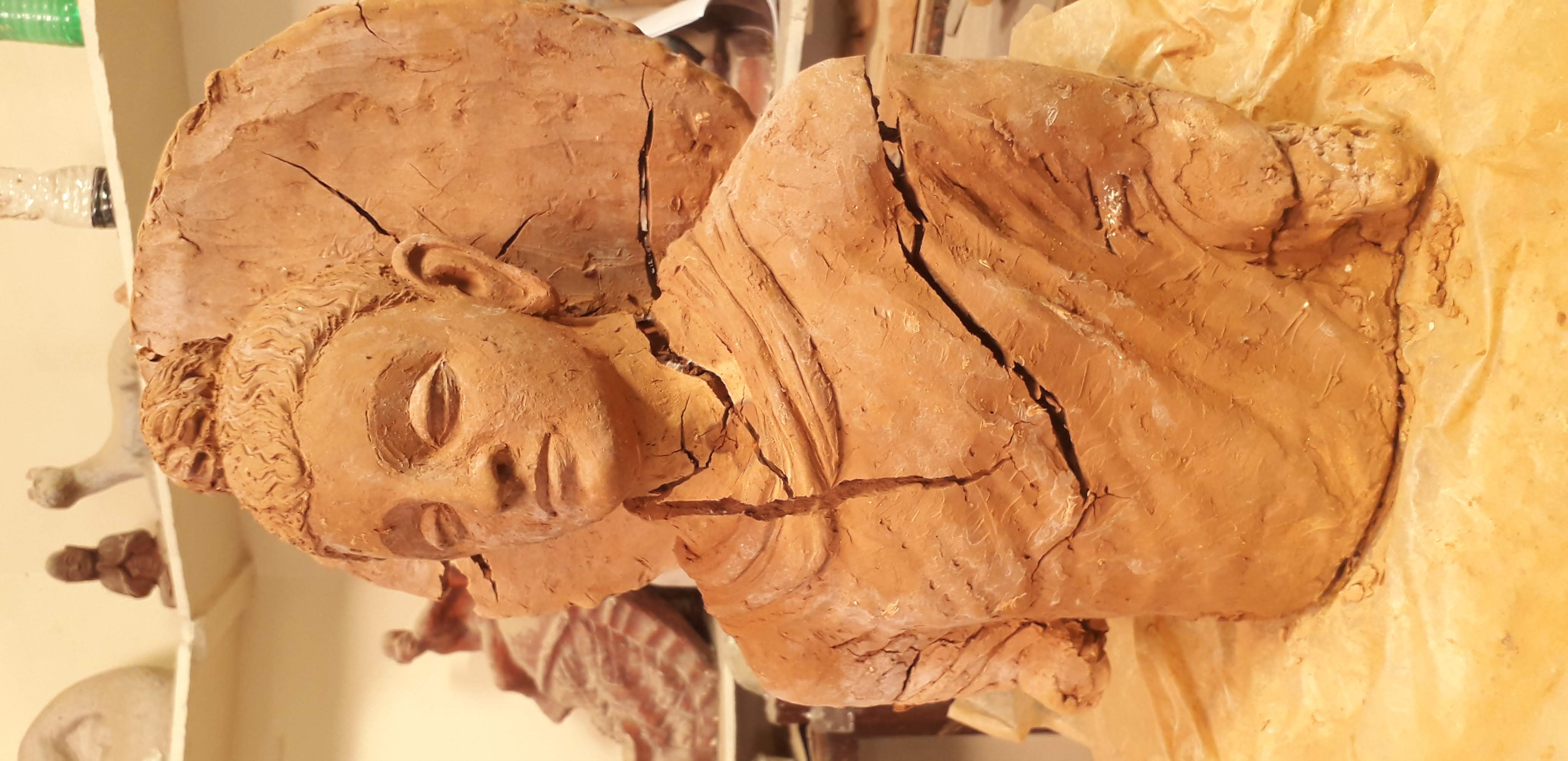 I made this maquette from Mathura period which basically focuses on drapery and calm features of Buddha.