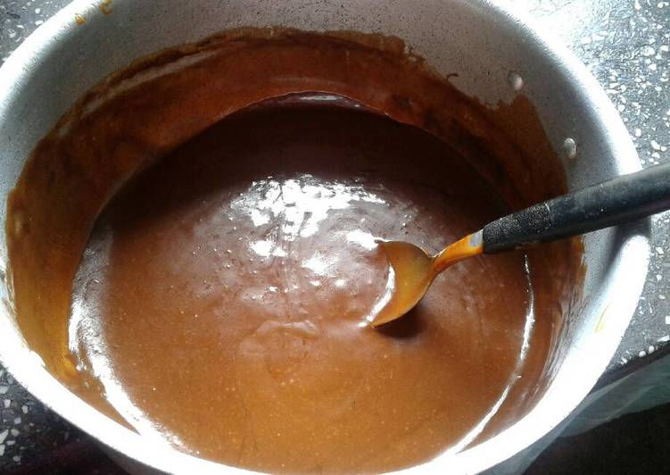 - Now we will continue with the preparation of the cover. For the filling and bathing of the chocolate cake easy we have to dissolve the cocoa or chocolate powder in the boiling water. Add the milks and bring to cook over a low heat, stirring constantly with a wooden spoon until the mixture thickens and takes the desired consistency. Incorporate the butter. Remove and leave to use.