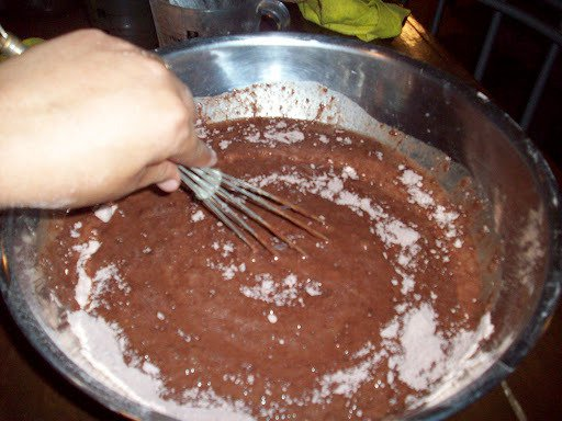 - Lightly beat the eggs and add to the preparation, it is important that all the ingredients of our homemade chocolate cake are well integrated in this step. Finally add the sugar and with this last ingredient, try to mix instead of beat. The dough should have a uniform and homogeneous appearance.