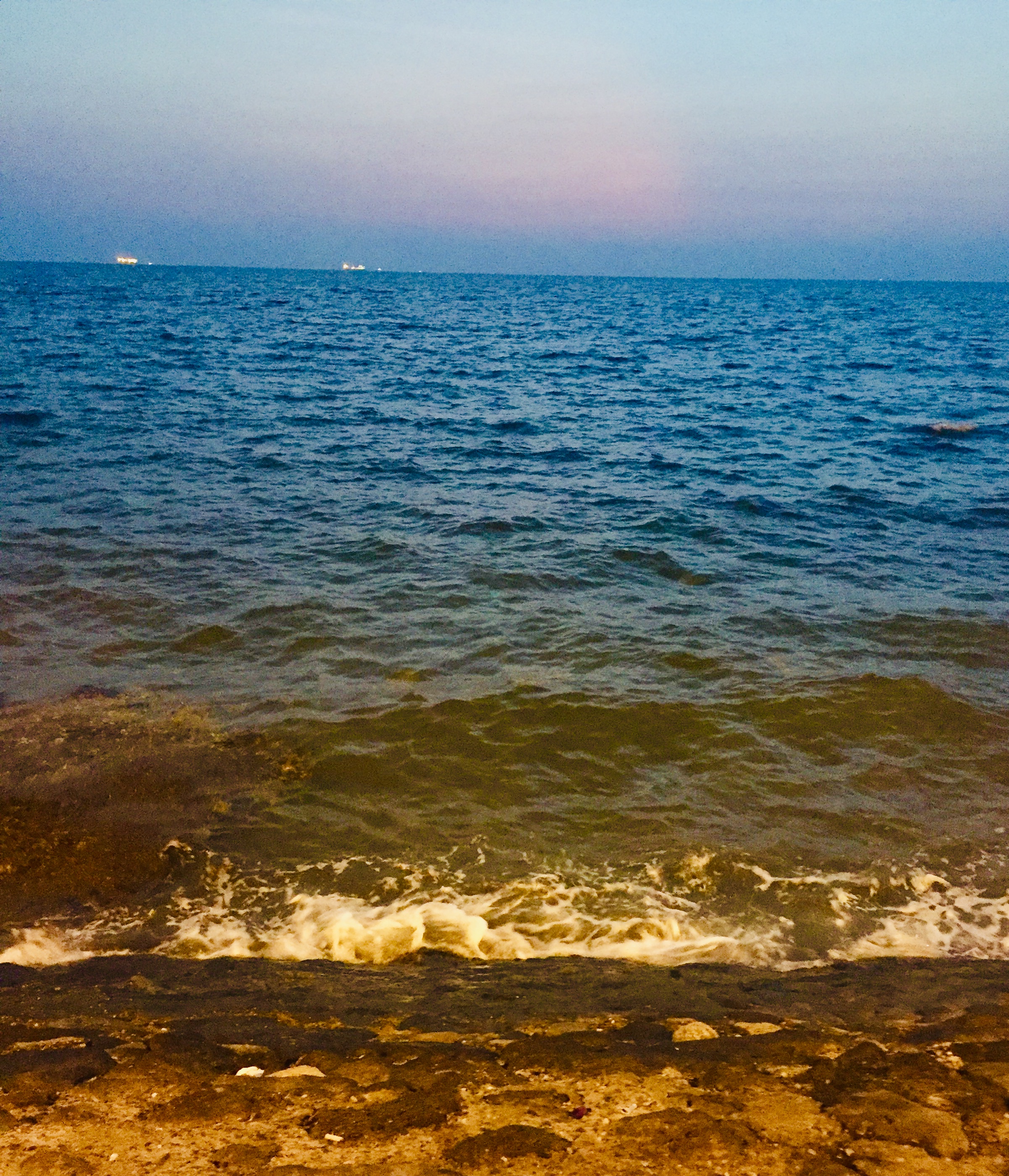 The dusk of the afternoon is coming down in the evening. We are standing beside the sea. There is a thunderstorm on the sea. It is so beautiful that the launch-steamer lamp is lit at the moment of the evening and it looks very beautiful to have captured the scenes on my mobile.