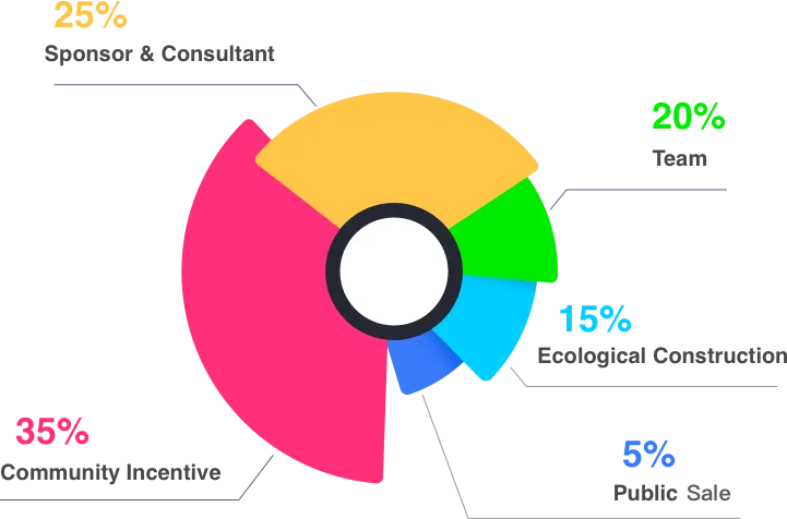 Team : 20% - 200,000,000 (3 years lock, semi-annual release)