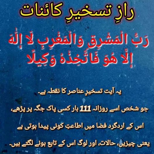 رازِ تسخیرِ کائنات (Raaz-e-Taskheer-e-Kainat) ایک روحانی اصطلاح ہے جس سے مراد ایسی دعائیں یا اذکار ہوتے ہیں جن کے بارے میں کہا جاتا ہے کہ وہ اللہ کے حکم سے مشکلات کو آسان اور حالات کو موافق بنا دیتے ہیں۔ اصل اسلامی تعلیم یہ ہے کہ کائنات صرف اللہ کے حکم سے مسخر ہوتی ہے اور انسان دعا اور نیک اعمال کے
