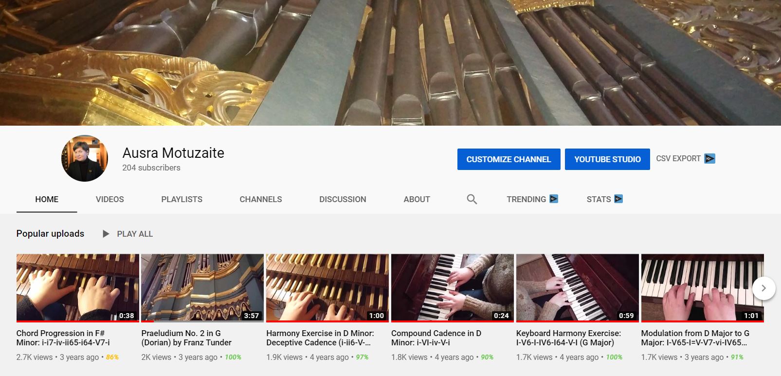 On top of that, recently Ausra has renewed her YouTube channel and started creating harmony videos which I have the pleasure to record with my camera. We are grateful for people who have been commenting about her videos that they are helpful and they could be the basis of a nice harmony course for her. For example, over the weekend she has created 2 videos - one on how to harmonize C major scale in 4 parts and the other on how to harmonize C minor scale in 4 parts. I'm not sure why but the C minor video is more popular than C major.