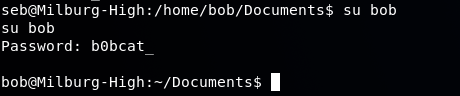 The result shows us Bob's password of b0bcat_