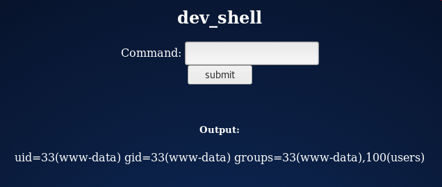 Screenshot of the dev_shell.php page (which is our attack vector):