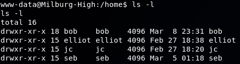 Based on our web enumeration, it looks like Bob is our system administrator. So I browsed to /home to see Bob's directory and if there were any other users: