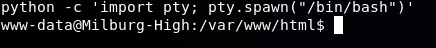 In order to get an interactive shell, we use the following command: python -c 'import pty; pty.spawn("/bin/bash")'