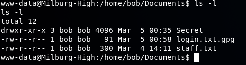 The login.txt.gpg is an encrypted file which has Bob's password. We will come back to this later.