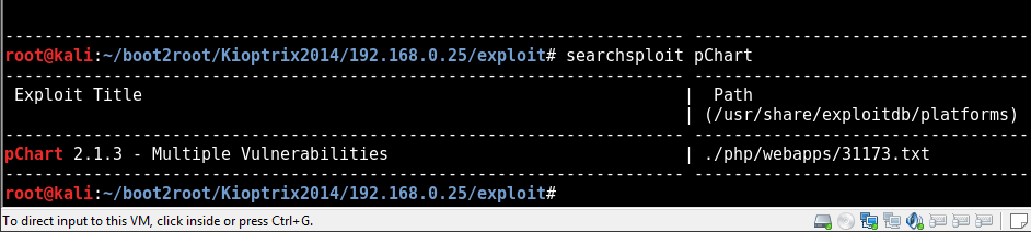 Using searchsploit we find an exploit that looks usable for pChart