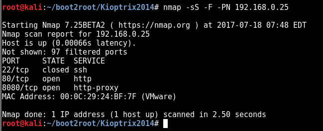 nmap -sS -F -PN 192.168.0.25
