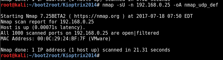 nmap -sU -n 192.168.0.25 -oA nmap_udp_def
