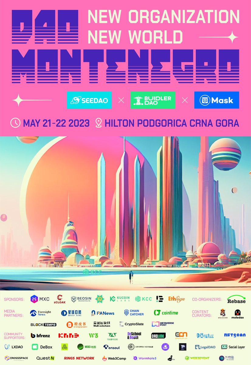 2023年5月21-22日,SeeDAO将联合 Buidler DAO 及 Mask Network,举办DAO 黑山 Conference。#DAOMontenegro 包括以太坊创始人 Vitalik、Microsoft Research 应用科学家Shrey Jain等嘉宾确认出席。 #seedao